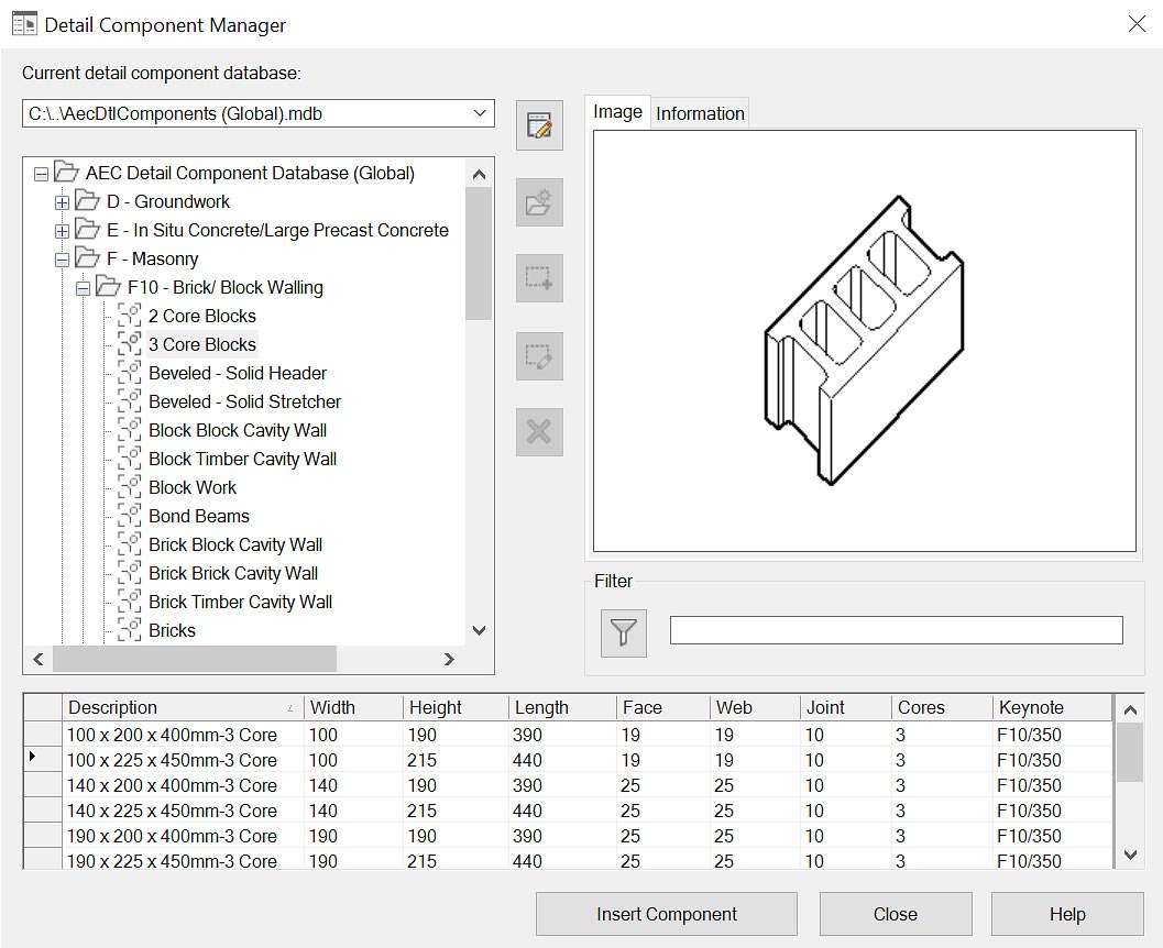 使用“详图构件管理器”对话框可以在不同详图构件数据库之间无缝地导航。该对话框具有层次树状视图和过滤功能,可以简化在数据库中查找单个构件的操作。