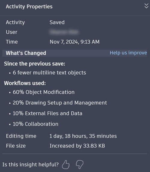 活动见解可捕获与改造模式相关的活动,并提供选定活动的详细信息。