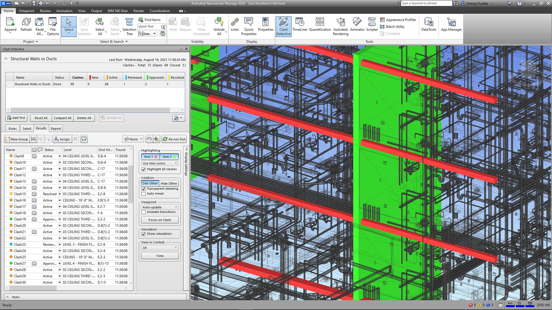 自动执行碰撞检测,帮助及早发现协调问题并规避风险,从而提高质量和可施工性。