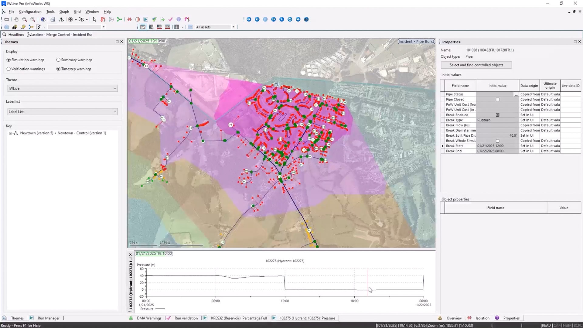 InfoWorks WS Pro 现报告受管道破裂等事件影响的客户数量以及影响时间。(视频:2 分 03 秒)(英文)
