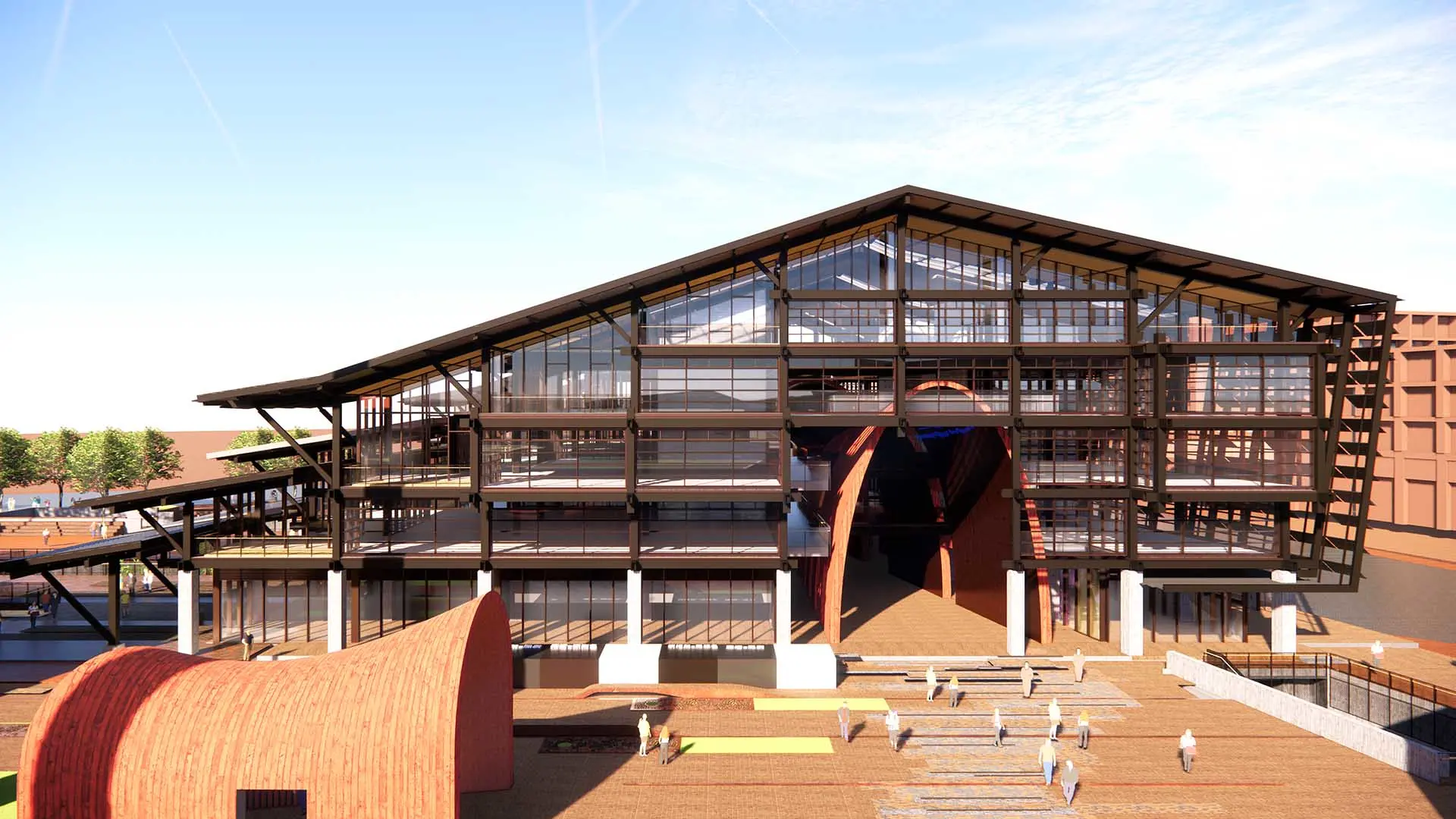 在颠覆性设计创新与建造之美背后,是项目建设方中建一局华江公司团队一段充满挑战的探索之旅。据介绍,该项目的工程特点在于其高24米、长70余米的不规则陡曲面多曲率外形,这种异形的特点使得建筑的每一厘米都呈现出独特的曲率变化,并衍生出7,000多个截面视图。此外,工程还融入了复杂的钢结构、多变的景观铺装和色彩斑斓,材质特殊的釉面窑砖等设计,并大量使用了新材料、新工艺与新技术,对团队的施工建造带来了前所未有的考验。