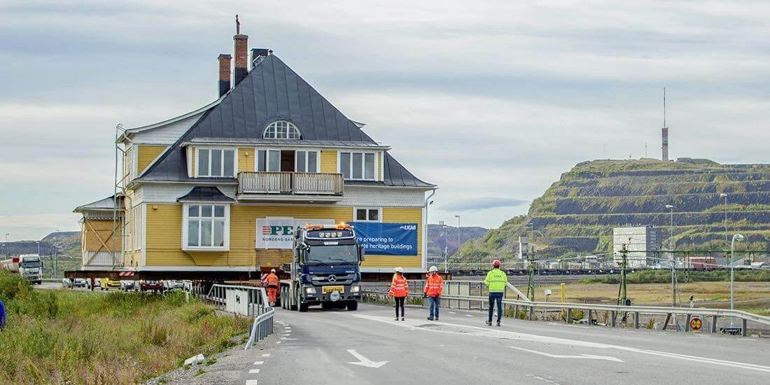 新城镇中心的部分区域已经建成。他们用卡车和起重机搬迁一些现有的木制结构,例如旧市政厅的钟楼。他们已将瑞典最具标志性的地标基律纳教堂拆除,然后在新地点一砖一木重新搭建。